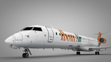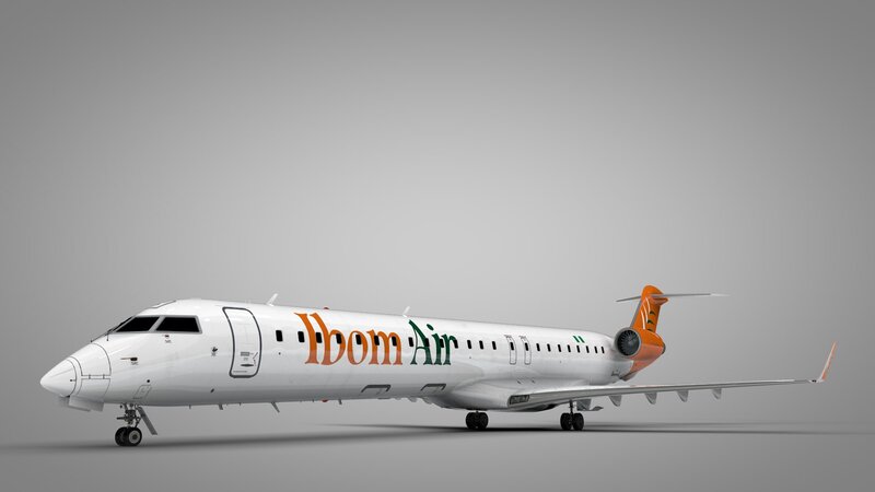Ibom Air BOMBARDIER CRJ 900 L2110 is ready to be animated. You can easily position it the way you need or animate.
