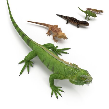 Rigged Lizards 3D Models Collection is a versatile set of 5 high quality, photo real 3d models that will enhance detail and realism to any of your rendering projects. The model has a fully textured, detailed design that allows for close-up renders, and was originally modeled in 3ds Max 2012 and rendered with V-Ray. Renders have no postprocessing.