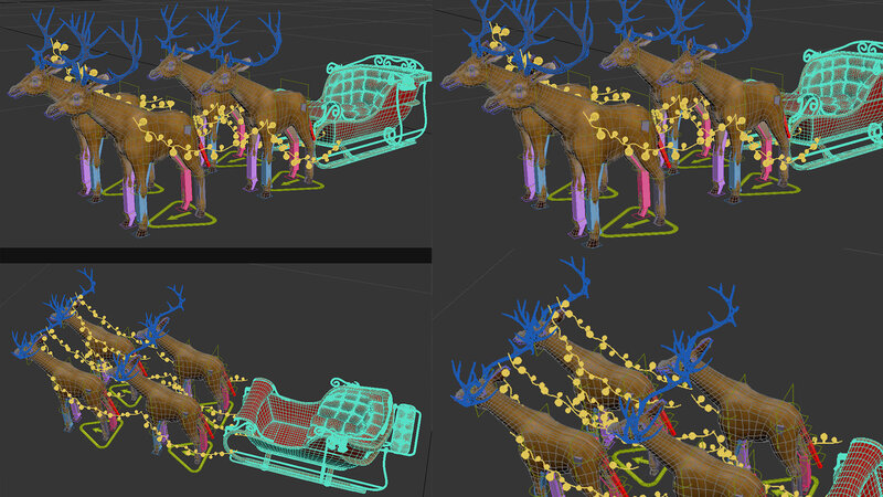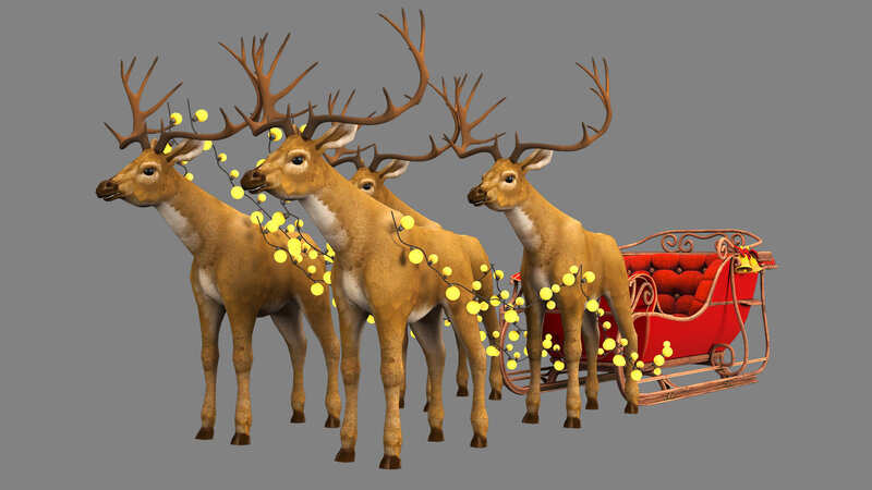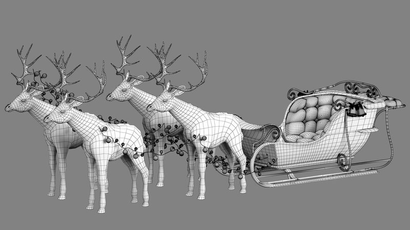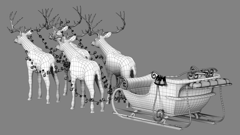 Santa Claus Sleigh and deer 3D model