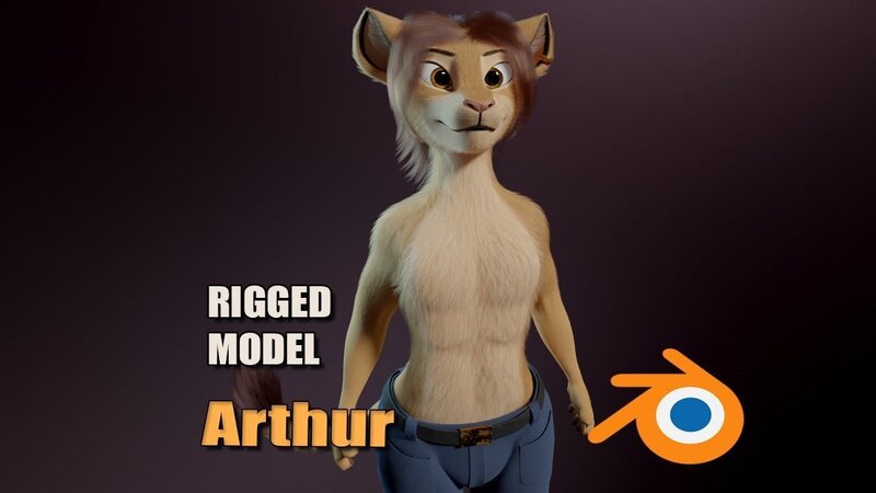 *3D model of an anthro lion made in Blender (.Blend) that I named Arthur. Rig , Hair and Fur only in blender, other formats only model mesh*