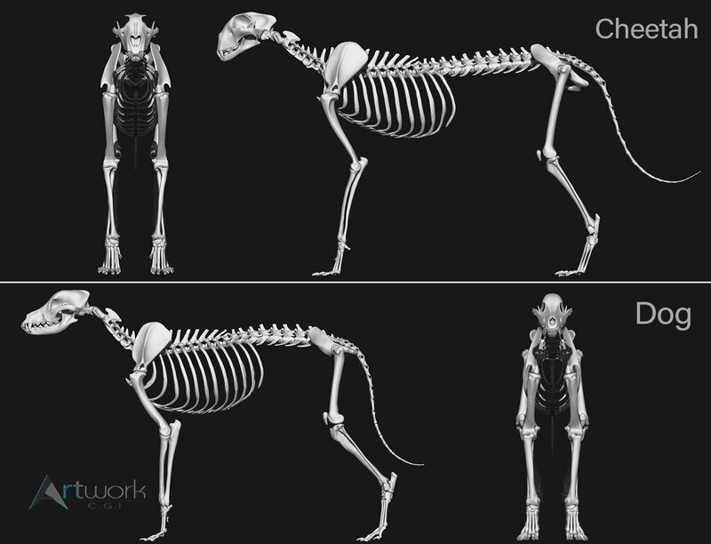 Dog and Cheetah skeleton 3D model