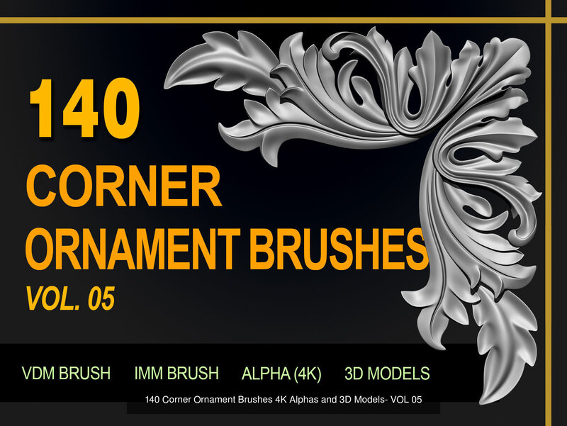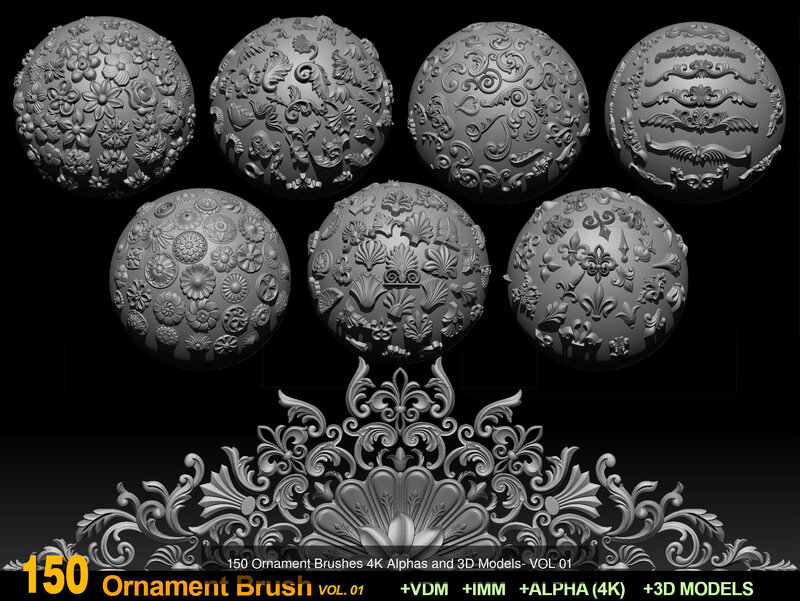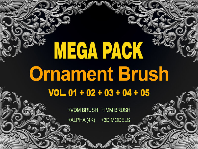 ORNAMENT BRUSHES ALPHA and 3D MODEL- VOL 01 - 02 - 03 - 04 - 05 3D Model Collection