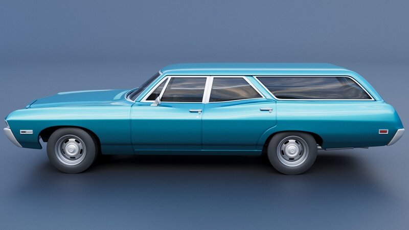 The model includes •Body •Body without hood •Hood •Body divided into 3 parts •Grille •Engine •Interior •Chassis •Wheels •Tires •Windows and glass for headlights and taillights