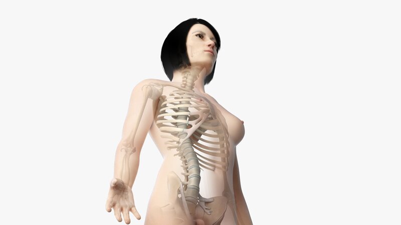 This is a high-end photorealistic 3D model of Asian Female Skin And Skeleton Rigged in 3ds Max.