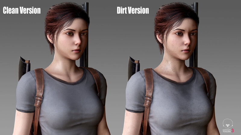 Package contains also Marmoset Toolbag scene with Character, shader setup and assigned textures. This scene was used to generate preview pictures.