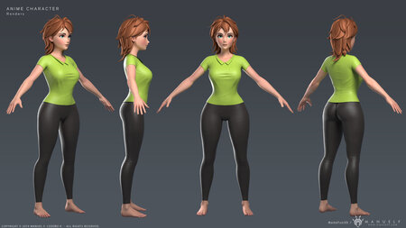 High quality model of a stylized young woman, in anime or cartoon style.