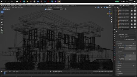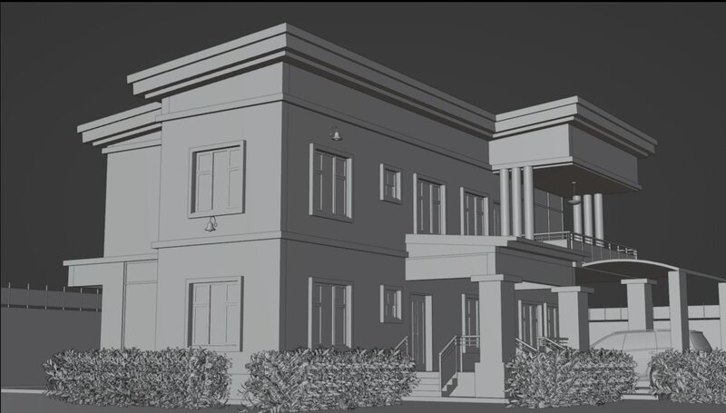 It contains several rooms including a kitchen, bedrooms, bathrooms, a sitting room,etc. It was exported from Revit to an fbx file and then imported into Blender.