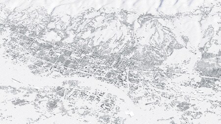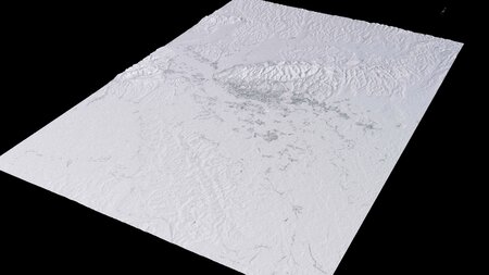 Originally created in Houdini 19. Final images rendered in Houdini. Data source is ASTER GDEM V3, ASTER WATER V1, Open Streep Maps 2022, Copernicus Sentinel 2016.