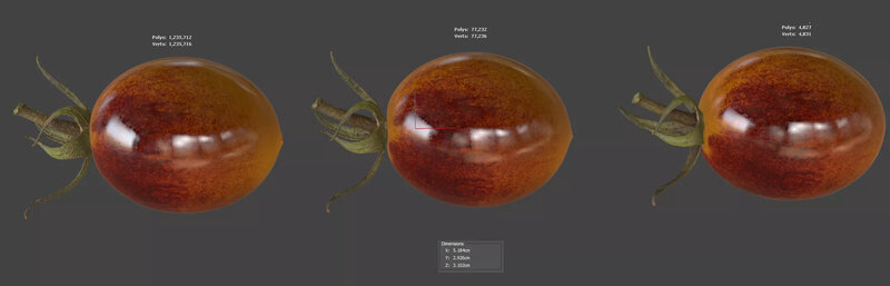 Enhance your visualizations, product designs, or still-life projects with this ultra-realistic 3D tomato model. Meticulously photogrammetry scanned and textured, it boasts multiple levels of detail (4K, 77K, 1235K polycounts) for close-ups and broader scenes.