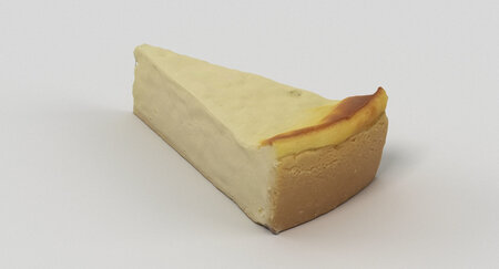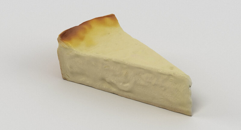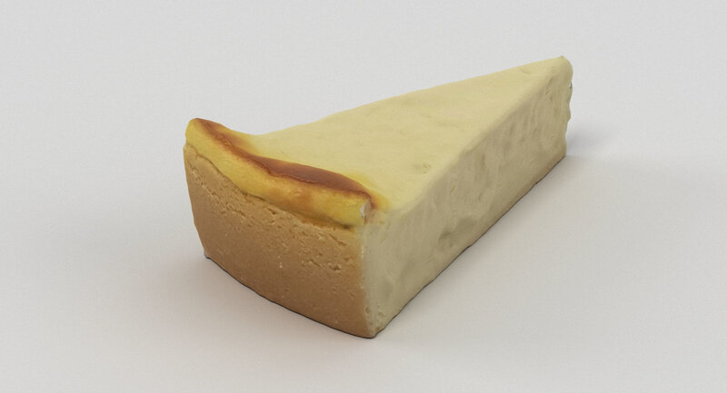 A DETAILED 3D MODEL OF A CHEESECAKE SLICE;