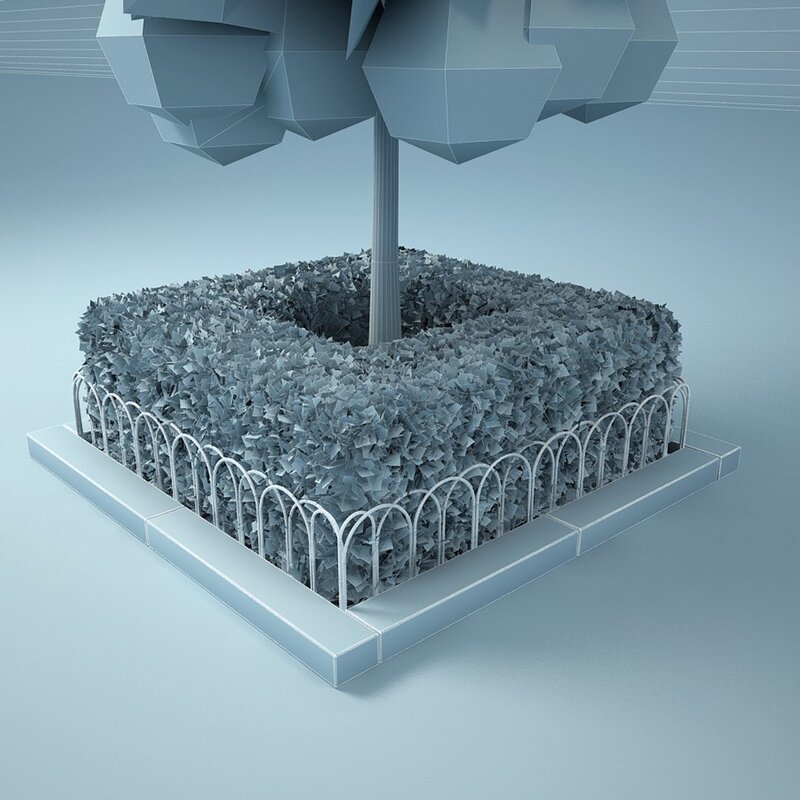 Here's a model of a tree planter to quickly populate exterior scenes. These low polygon models are designed to be polygon efficient. The tree and vegetation both make use of opacity maps to reduce mesh size.