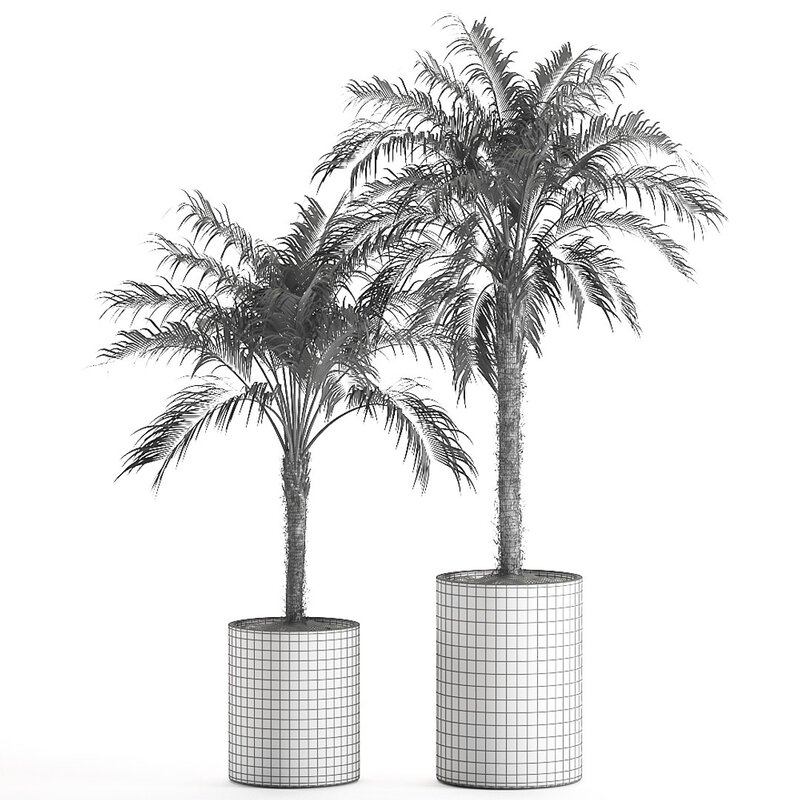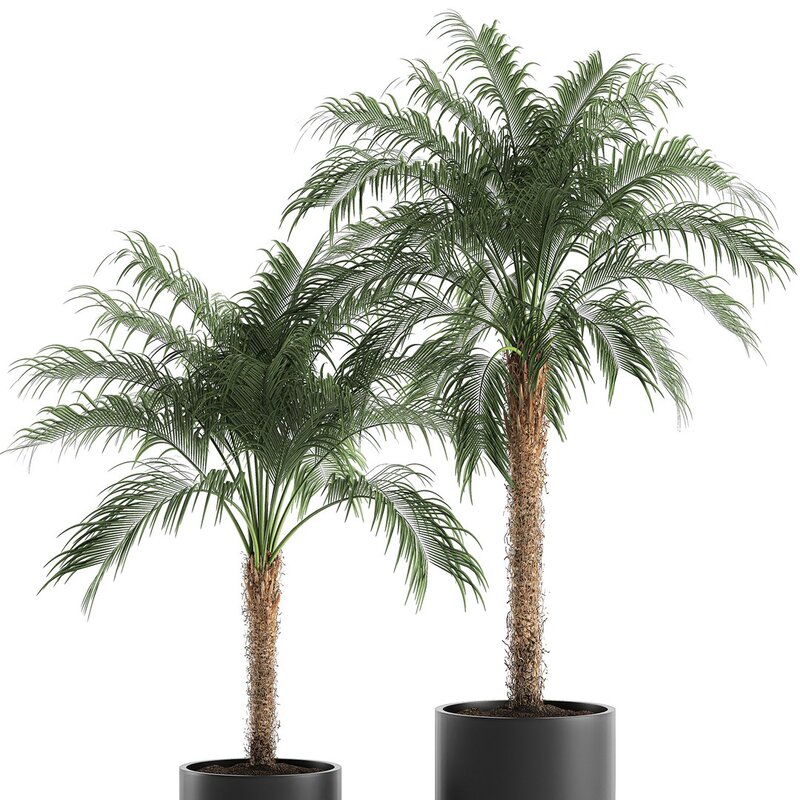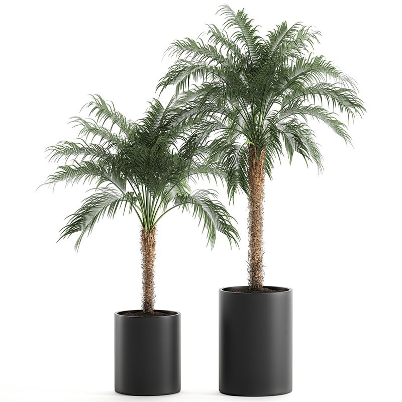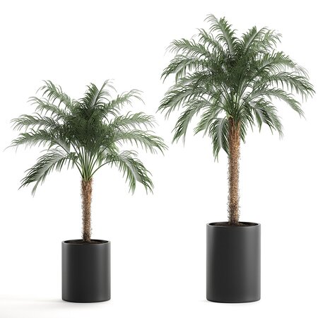 Decorative palm trees for the interior in black pots.