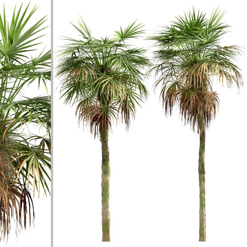 4 different Trachycarpus Fortunei trees in the scene.