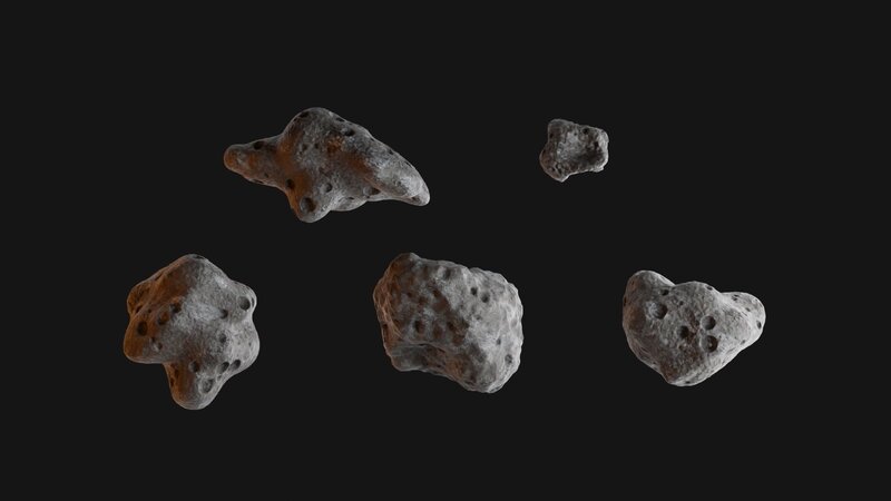 This set has 5 asteroids. Asteroids are found in the Solar System, particularly in the asteroid belt between the orbits of Mars and Jupiter, as well as in various galaxies of the universe, making them cosmic objects and cosmic bodies for astronomers to study. In addition, other interesting objects can be found in space, such as comets, which have their own orbits, tails and are interplanetary objects, as well as planets, moons, stars, galaxies and black holes, which capture the imagination and stimulate new research space